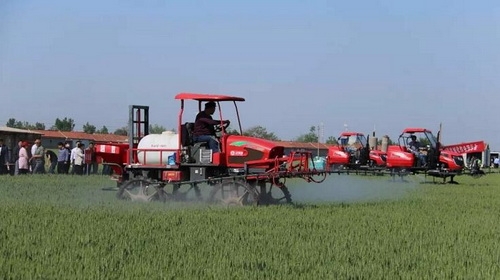 现场演示会上,县农机局分管负责人介绍了我县植保机械化发展情况和市场前景,农机推广站负责人讲解了高效植保机械化技术和自走式喷杆喷雾机、植保无人机的常用类型、特点及作业要求,5台自走式喷杆喷雾机和8台植保无人机进行了现场演示。演示完毕后,由厂家技术人员介绍自走式喷杆喷雾机及植保无人机的特点、价格与使用维护。