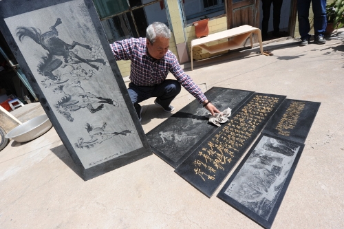 日前,耿玉富在自家院子里展出了他的伟人刻瓷画,引来了四邻八舍前来观看,他说:“愿这些作品能够让人们感受到中国共产党走过的不平凡历程。”(摄影报道/成国栋 陈岩)