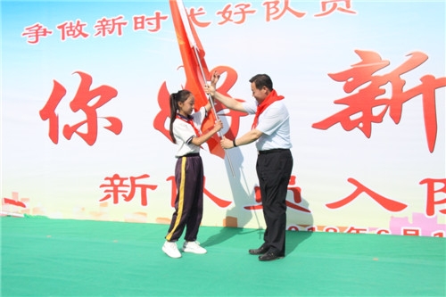 活动在庄严的国歌声中拉开序幕,县城南学校383名一年级学生系上鲜艳的红领巾,成为一名光荣的少先队员,并面向鲜红的队旗,庄严宣誓。 一张张可爱的笑脸,一条条鲜艳的红领巾,在队旗的映衬下显得格外生动。