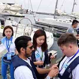 当日,正在青岛参加第三届上海合作组织青年交流营的200多位营员来到青岛奥林匹克帆船中心,开展帆船拓展训练。