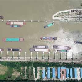 7月17日,江苏淮安灌溉总渠航道上众多船舶正在航行,迎来夏季水上运输小高峰。