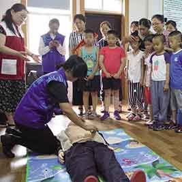 7月23日,共青团桓台县委“彩虹伞·暑期自护知识”活动走进宝发社区,志愿者为30余名青少年讲解常见的意外伤害与急救的重要性,并现场示范人工呼吸急救的动作,耐心地解答了大家提出的各种急救问题。