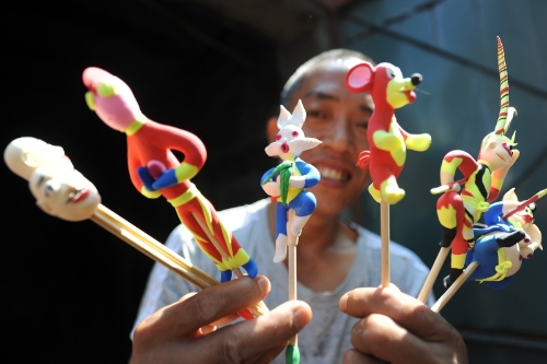 回家后,经过反复练习,半年后100多种人物造型都有模有样了。张东便做了个面人箱子上街摆摊了。