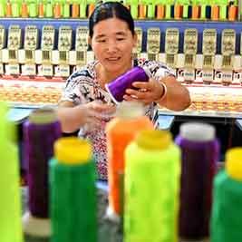 8月14日,在山东省淄博市沂源县石桥镇葛庄村,一名妇女在针织车间劳作。近年来,山东省沂源县积极带动广大家庭妇女从事刺绣、针织产品的加工生产,通过成立产业协会和专业合作社,将这些产品从农家妇女的针线笸箩引向全国大市场,并出口多个国家和地区,成为当地脱贫增收的“美丽产业”,广大妇女用双手织绣出美丽新生活。