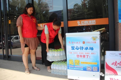 8月15日至8月30日,爱心补水站迁至巨隆家居体验馆前台处,仍可免费取用。 (石龙迪 陈岩 摄影报道)