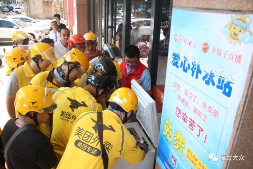 记者在现场看到,环卫工人、快递员、外卖小哥等户外工作者们在炎炎夏日喝上了凉爽的爱心饮用水,每一个人的脸上都洋溢着灿烂的笑容,爱心补水站前不断上演着一幕幕感人肺腑、沁人心脾的动人场景。
