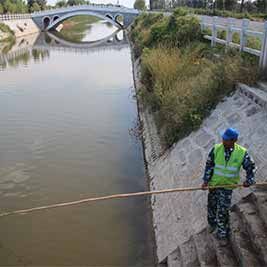 近日,在荆家镇姬桥村,河道管理员正对镇域河道内的漂浮物、杂草及岸边的垃圾进行清理。据悉,该镇定期开展河道垃圾清理,进一步优化水域环境,提高水体质量,确保河道畅、生态美。
