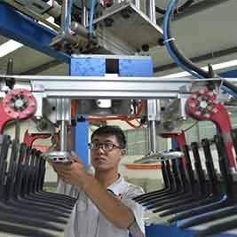 9月5日,河北朗科自动化设备有限公司工人安装码垛机器人抓手。近年来,河北邢台经济开发区加大科技创新力度,引导相关企业发展机器人、智能装备、智能硬件等产业,以机器人和智能装备制造助力当地经济转型升级。当地从国外引进机器人技术,结合实际应用研发生产了焊接、码垛、搬运、切割、教学等类型的机器人,产品应用于机械焊接、汽车制造、物品搬运等领域。