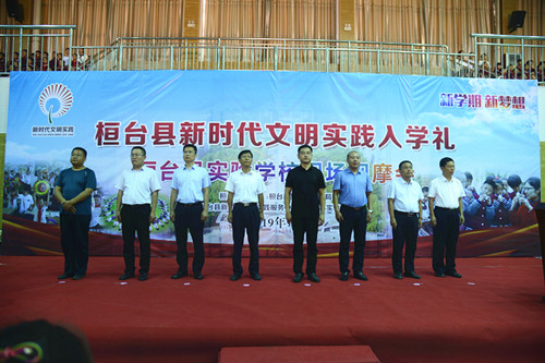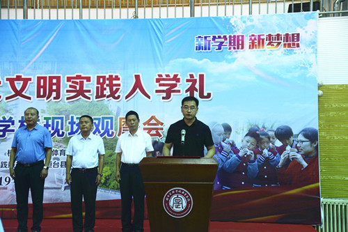 为教育引导广大青少年“扣好人生第一粒扣子”,倡导文明新风,传承优秀传统文化,推动新时代文明实践工作落地落实,9月6日,桓台县新时代文明实践入学礼现场观摩会在县实验学校举行。一年级新生和家长一千余人参加入学礼,全县中小学分管校长、各镇中心校分管校长到场观摩。县委宣传部常务副部长许志波,县教育和体育局局长祁志超,县委宣传部副部长甘发城,县文联副主席胡茂林,县教育和体育局党组成员、副局长赵光惠,县教育和体育局党组成员巩发亮,桓台县新时代文明实践服务中心副主任伊靖出席活动。