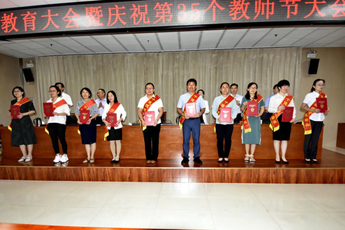 9月9日上午,我县召开全县教育大会暨庆祝第35个教师节大会。县委书记贾刚出席并讲话,县委副书记、县长边江风主持。县政协主席高连义,县委副书记刘帅,县委常委、组织部长、教育工委书记高原,东岳集团有限公司董事长张建宏等出席。