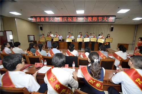 会上宣读了县委、县政府关于教育工作和尊师重教先进单位、先进个人的通报,关于颁发2019年东岳教育奖励基金的通报,并为优秀教师和先进单位颁奖。教师耿文超、王菲、牛苗苗分别作了典型发言。