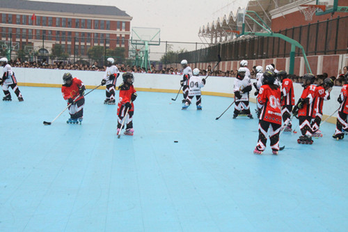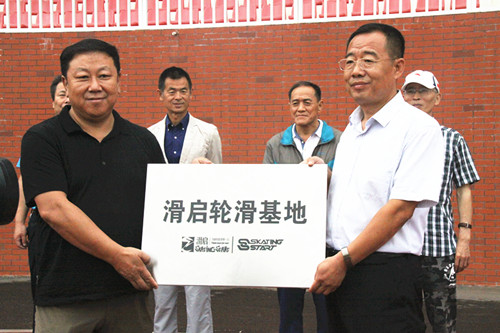 皇岛中北滑启体育用品有限公司董事长姜丰为桓台一中附属学校授牌“滑启轮滑训练基地”,参与仪式人员一起观摩了精彩的自由式轮滑、极限轮滑等轮滑表演及轮滑球比赛。