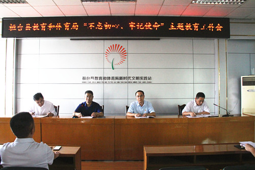 9月16日,县教育和体育局召开“不忘初心、牢记使命”主题教育工作会,深入学习贯彻习近平总书记在“不忘初心、牢记使命”主题教育工作会议上的重要讲话精神,认真落实中央、省委“不忘初心、牢记使命”主题教育第一批总结暨第二批工作部署会议精神和全市、全县“不忘初心、牢记使命”主题教育工作会议要求,对全县教体系统开展“不忘初心、牢记使命”主题教育进行全面安排部署。县委“不忘初心、牢记使命”主题教育巡回指导六组成员秦成鑫到会指导并提出具体要求,县委教育工委常务副书记、县教体局党组书记魏峰作动员讲话,县教体局党组成员荆长山主持会议。