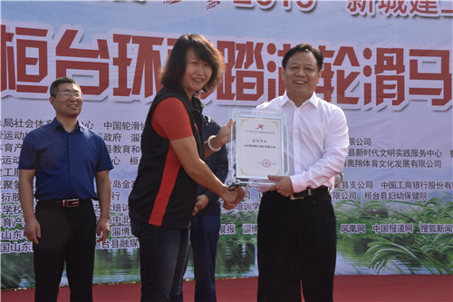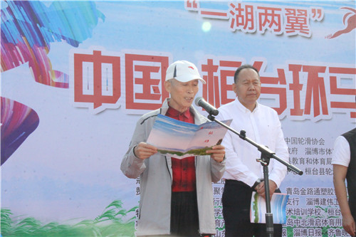 出席此次大赛开幕仪式的领导和嘉宾有国家体育总局社会体育指导中心轮滑部主任张娜,山东省轮滑运动协会主席王杰,山东省轮滑运动协会副主席张宝山, 淄博市体育局局长高义波,淄博市体育局党组成员、市体育总会副主席张铁军,桓台县委副书记、县长边江风,鲁中晨报社副总经理徐博,桓台县教育和体育局党组书记魏峰,国际级裁判、本届大赛裁判长王尔,淄博市轮滑运动协会会长胥智龙,山东新城建工股份有限公司董事长、总经理岳可江等。开幕仪式由淄博市体育局局长高义波主持。参加开幕仪式的还有来自全国各地的轮滑代表队以及选手们,他们为绿色健康、时尚向上“代言”,是轮滑马拉松大赛上璀璨的明星。