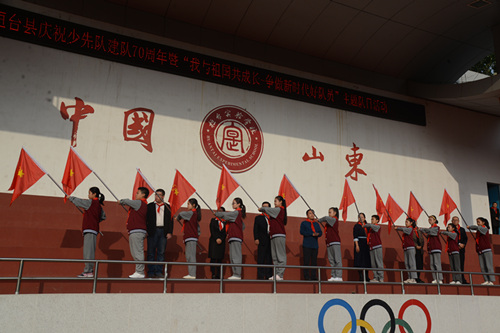 10月12日上午,迎着金秋的朝阳,桓台县庆祝少先队建队70周年暨“我与祖国共成长 争做新时代好队员”主题队日活动在桓台县实验学校隆重举行。县教育和体育局党组成员、县少工委主任巩发亮,团县委副书记毛晓兵,县少先队总辅导员武小涵应邀出席,桓台县实验学校副校长李淑华,桓台县实验学校初一年级辅导员及少先队员等共550余人参加活动。