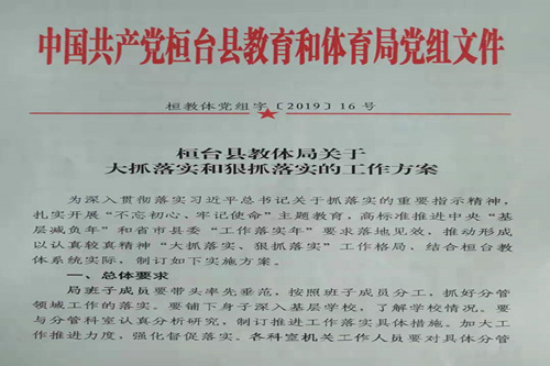 “不忘初心、牢记使命”主题教育启动以来,县教体局认真贯彻落实中央部署和省市县委要求,统筹部署各项工作任务,聚焦立德树人根本任务,找差距、抓落实,力求主题教育取得实效。