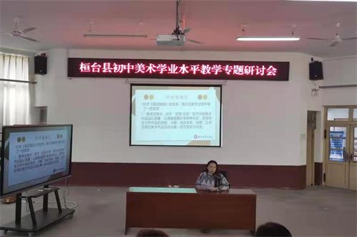桓台县实验学校赵雅芝老师作了《美育之于教学的思考》的专题发言,结合自己的教学实践,针对淄博市美术中考的内容、方式、范围、组织实施等方面进行了解读。