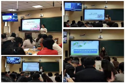 接着,鱼龙中学的巩本菊老师和侯庄中学的荆倩老师就小说阅读和议论文阅读做了教学经验介绍。巩本菊老师抓住“真阅读”这一命脉,条分缕析,精准举例,翔实透彻地传递出对小说阅读的独到见解。荆倩老师以执教《怀疑与学问》为例,阐述了对初四议论文阅读教学的思考。荆老师以“精讲多练、以练代讲”的课堂理念,对学生严格要求、耐心指导,在强化练习中让学生的思维品质、学科素养、知识技能持续攀高。