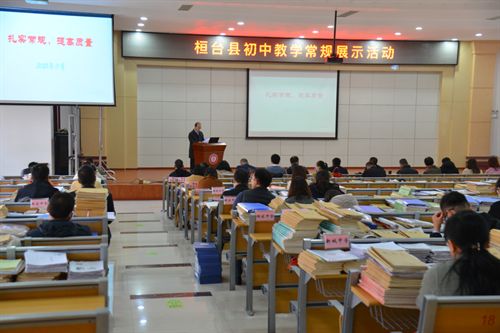 活动伊始,由各镇中心学校和县属初中分管教学的副校长进行教学常规管理工作汇报。各学校在以教学常规为抓手,以提高教学质量为目的,严抓日常教学规范管理的基本遵循下,管理理念、方法和特色各具千秋。实验学校的教师“六艺”、“四定”“八备”“六统一”的集体备课制度,一中附属的常规检查系列化、特色作业创意化、作业多样化制度;城南学校“实”“活”“简”的课堂教学理念,实验中学的“三活三实”“一生一策”制度,世纪中学一月一问卷、“七个一”教学常规制度,陈庄中学的集锦本、堂堂清制度等,都体现了教学常规管理的扎实、精细和创新,赢得了在场领导和骨干教师们的阵阵掌声。