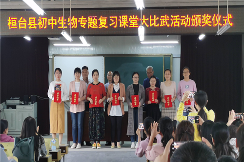 教研室副主任王德军和荆家镇中心学校校长刘金亮为“初中生物专题复习课堂大比武活动”中表现优异的16位参赛教师和16位指导教师进行了颁奖。