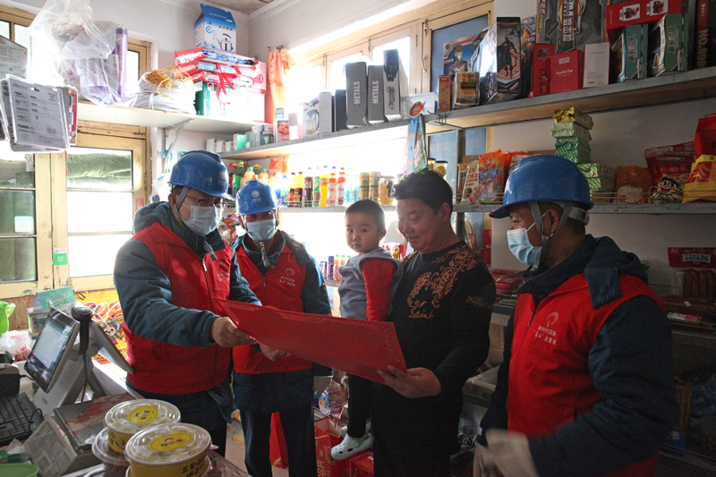 索镇张桥村村民任峰远经营着一家小超市,春节将至,他购进了一批冷冻食品来满足供应需求,志愿者们了解情况后,对超市冰柜插座、线路等进行仔细摸排,并对漏电保护器进行了检查,确保漏保正常工作。同样,志愿者们也把“福”字送到了任峰远手中,增添了节日的氛围。