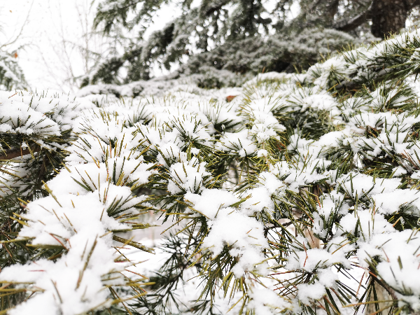 在雪的点缀下更显多姿