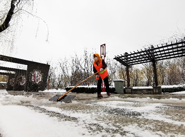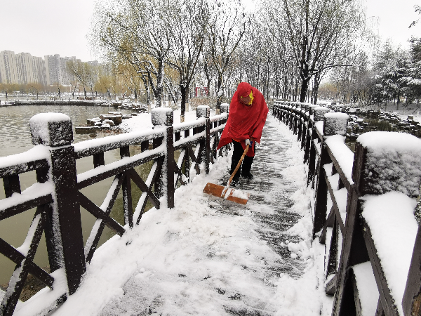 最美的雪景,是你扫雪的画面……(于洋 罗佳宜)