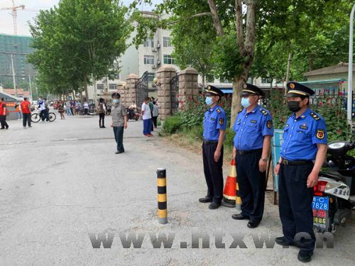 高考期间,县综合行政执法局对考场周边噪音、乱摆摊设点等进行管控,确保考试环境安静有序。