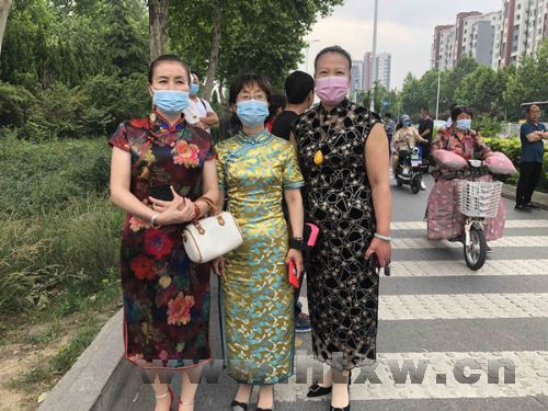 考场外,多位妈妈身穿旗袍