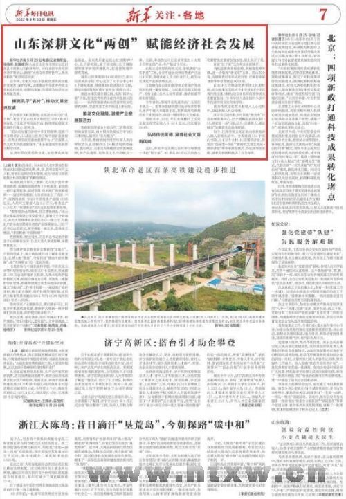 齐鲁网·闪电新闻9月30日讯 今天出版的《新华每日电讯》在第7版刊文《山东深耕文化“两创” 赋能经济社会发展》,聚焦第八届尼山世界文明论坛,点赞文化大省山东强化优秀传统文化研究阐发、保护传承。