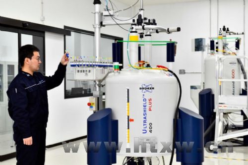 在万华化学集团磁山全球研发中心,科研人员在做实验。(新华社记者郭绪雷 摄)