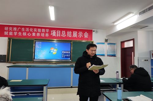 为总结我县2021年开展初中物理生活化实验教学工作情况,交流各校在培育学生树立科学精神、形成实践创新能力、提升学生核心素养方面的具体做法,12月30日全县初中物理“研究推广生活化实验教学,赋能学生核心素养培养”项目总结展示会在桓台一中附属学校顺利举行。