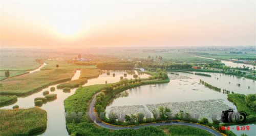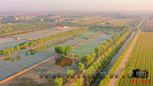 马踏湖畔华沟村千亩荷塘,一方方农田被河道分隔,犹如江南,此时是许多航拍爱好者惦念的风景。