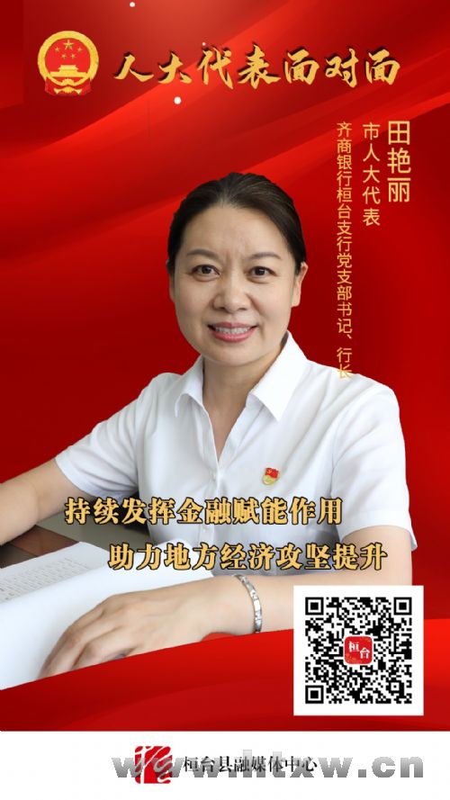 今天的《人大代表面对面》专栏,我们一起关注市人大代表、齐商银行桓台支行党支部书记、行长田艳丽,了解一下齐商银行桓台支行如何发挥金融赋能作用,助力地方经济攻坚提升,聆听田艳丽的履职心得。