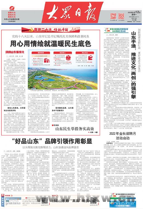 习近平总书记对山东情深似海、厚望如山。党的十八大以来,习近平总书记4次亲临山东视察,多次作出重要指示批示,为山东发展把脉定向、掌舵领航。在以习近平同志为核心的党中央坚强领导下,省委、省政府团结带领全省人民勇担使命、砥砺奋进,山东迎来了发展质量最好、城乡面貌变化最大、广大人民群众得到实惠最多的十年。9月5日起,大众日报推出“领航中国·调研山东看变化”大型全媒体主题报道,展现山东深入贯彻落实习近平总书记重要指示要求,踔厉奋发、勇毅前行的生动实践,激励全省党员干部群众以实际行动迎接党的二十大胜利召开。