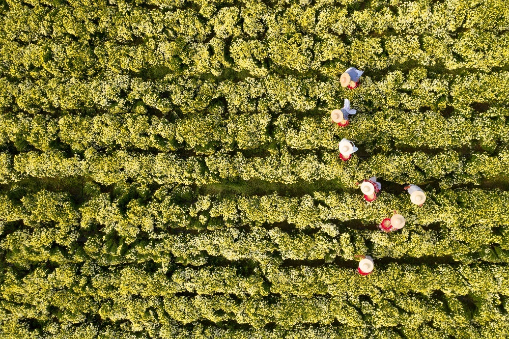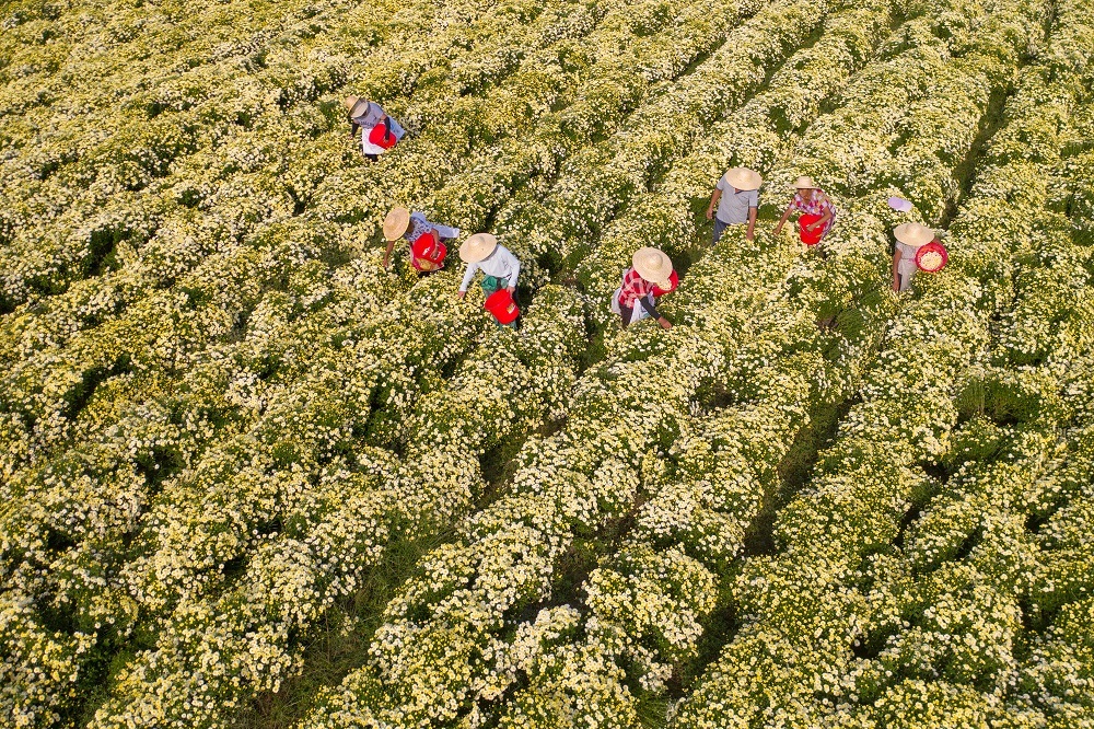 金秋时节,山东省淄博市高青县黑里寨镇聚鑫花香中药材专业合作社种植的药用菊花进入采收期,农民们忙着进行采摘,一派繁忙的丰收景象。近年来,高青县黑里寨镇积极探索富民强村新路径,引导农民发展特色农业种植,拓宽增收渠道,助力乡村振兴。