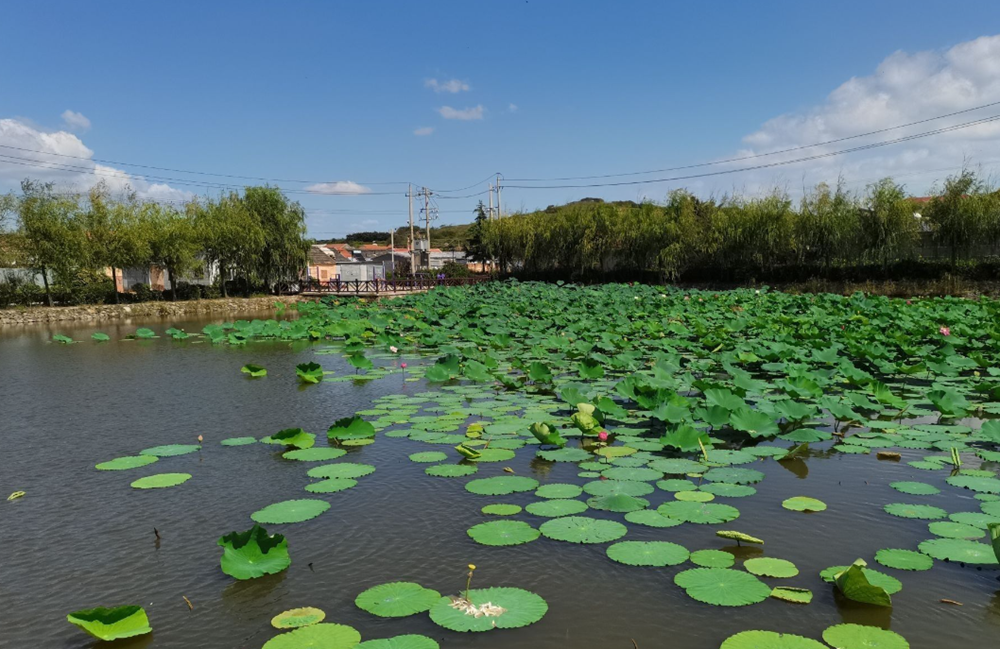 “里栲栳网格村5年前被评为‘青岛市美丽乡村示范村’,这个青岛最东端的古老小渔村,具有极高的历史文化及旅游价值。”即墨区田横镇里栲栳网格村党支部书记杨学知介绍,里栲栳网格村有一片荷塘,占地百余亩,主要种有荷花、睡莲两种水生植物,现在是远近闻名的“清风荷韵”主题公园。里栲栳网格村地理位置优越,村子依山而建,村里房屋错落有致地顺着山坡向西延伸排开。村前荷塘一片碧色,荷花陆续绽放,蝉鸣蛙声奏响乡村振兴的优美旋律。