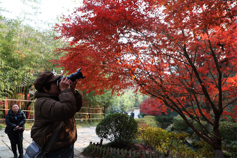 游客用镜头记录下美丽的红枫