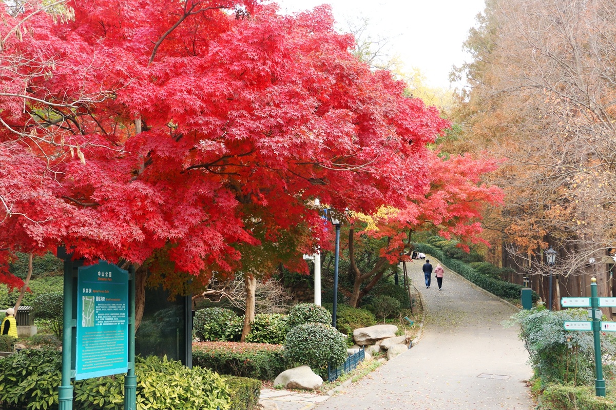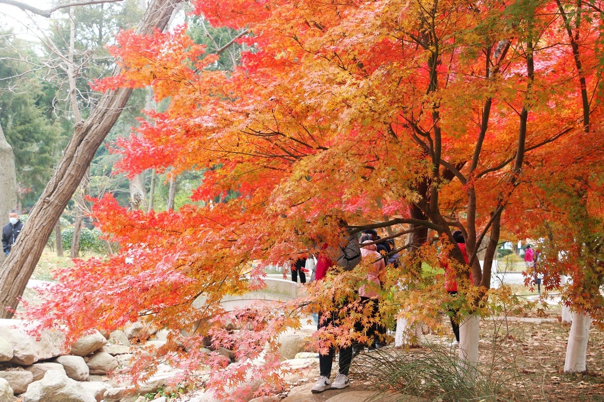 进入11月中下旬后,青岛中山公园各种变色树林相继进入最佳观赏期。随着气温持续走低,中山公园枫林涧迎来了“赏枫看红叶”的最佳时期。五角枫、三角枫、鸡爪槭,百余株枫树沿河道两侧栽植,高低错落,绵延数百米,如晚霞红晕。风过,片片枫叶起舞飘落,置身林间,宛如游在画中。