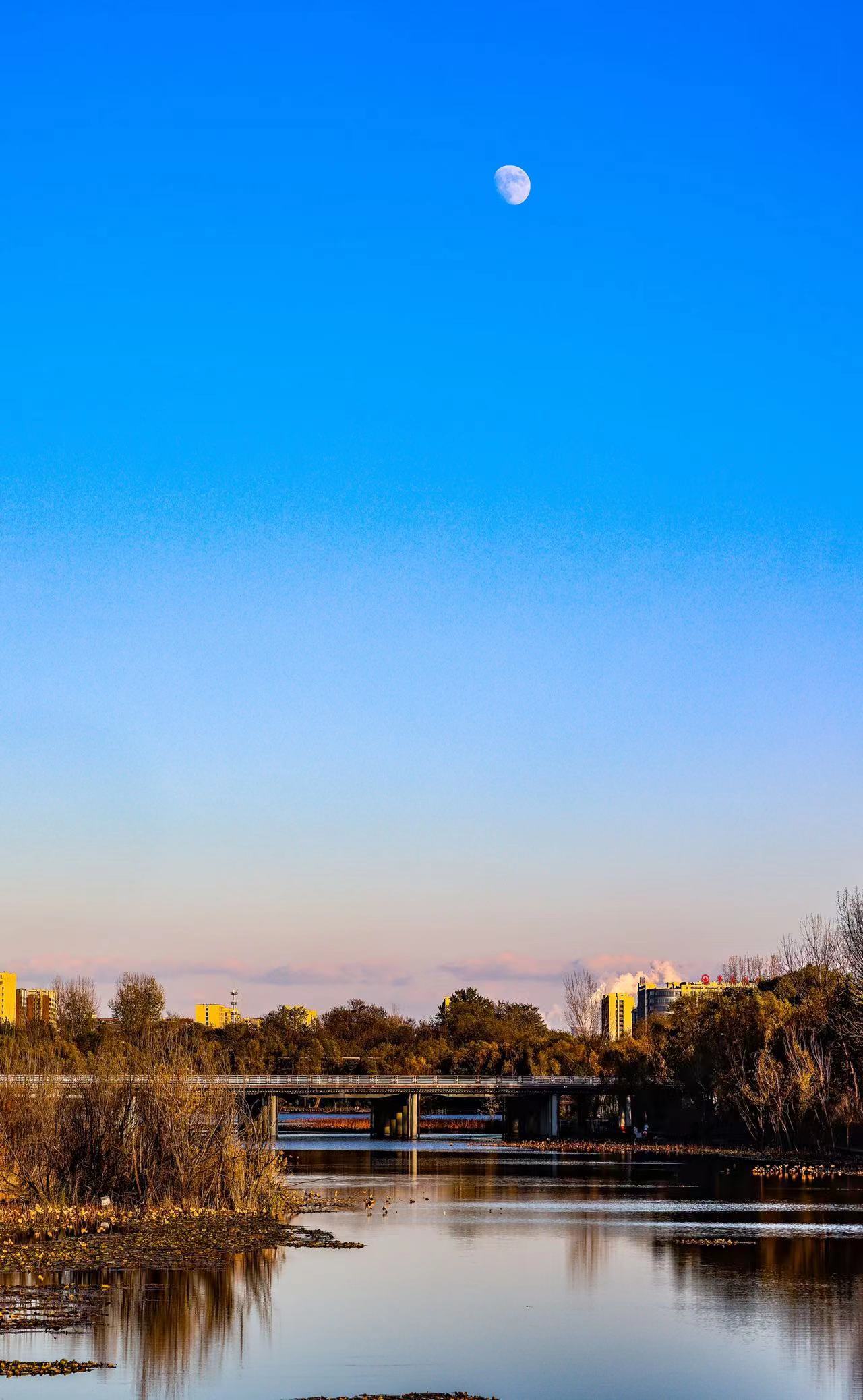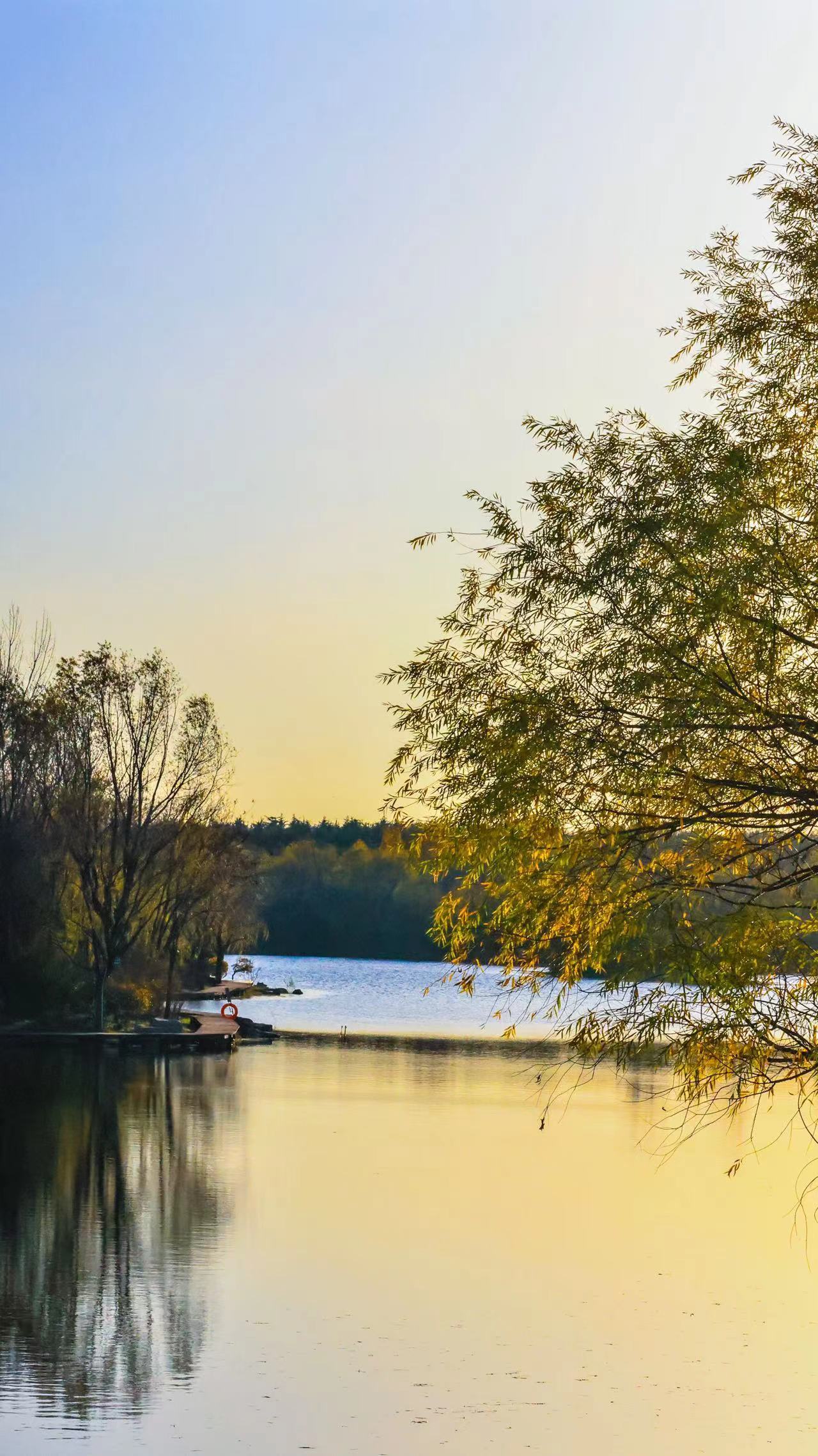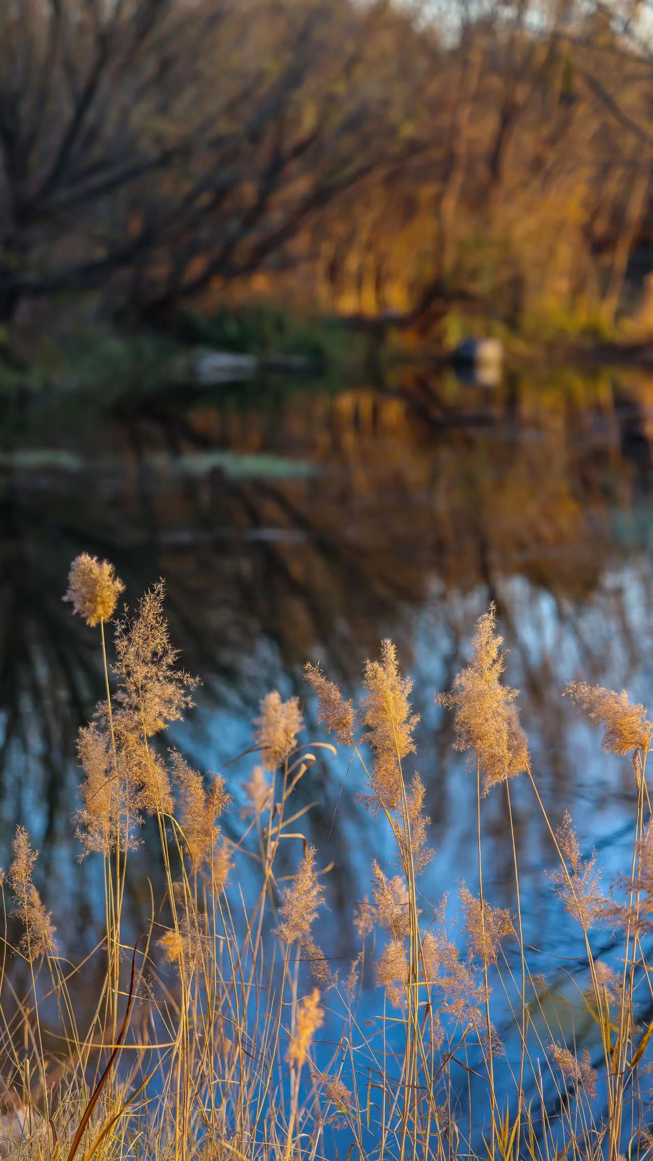 湖边芦苇两三枝,轻轻飘摇夕阳下。