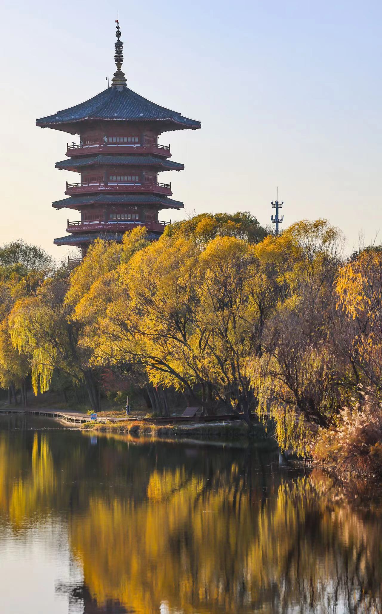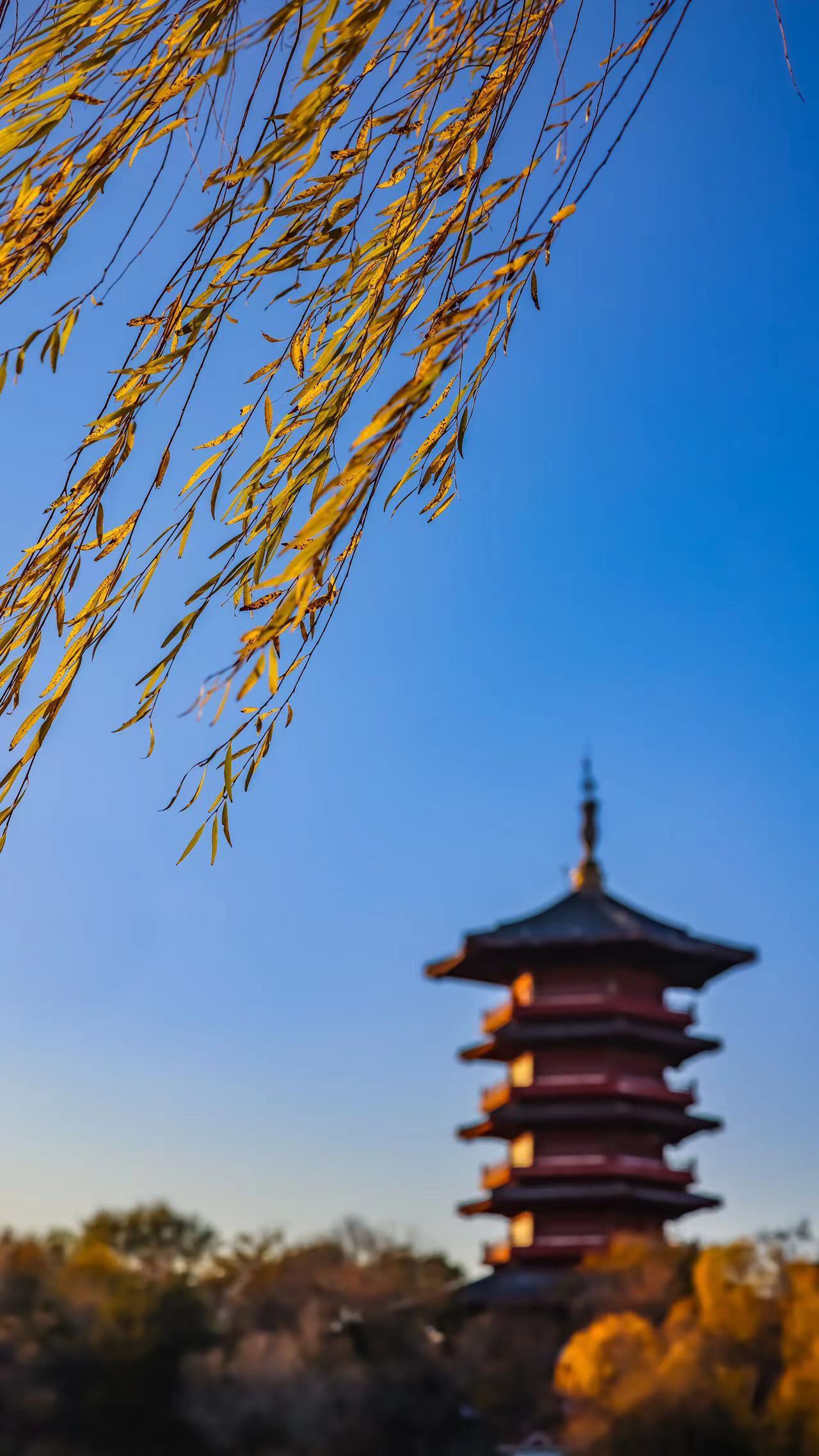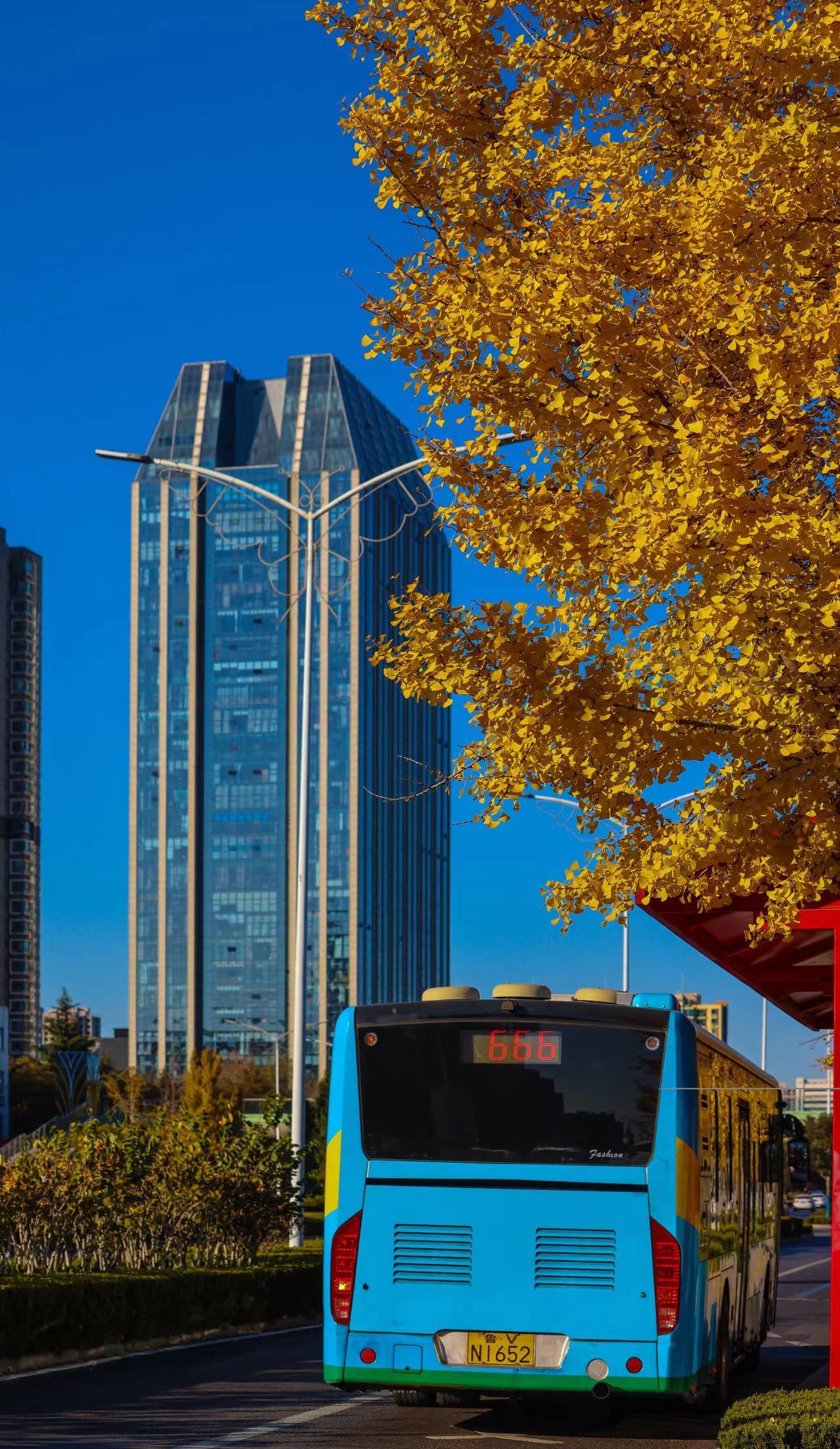 山东潍坊,初冬寒笔轻扫,银杏叶黄漫天。摇曳满树扇叶,邂逅一路金黄。