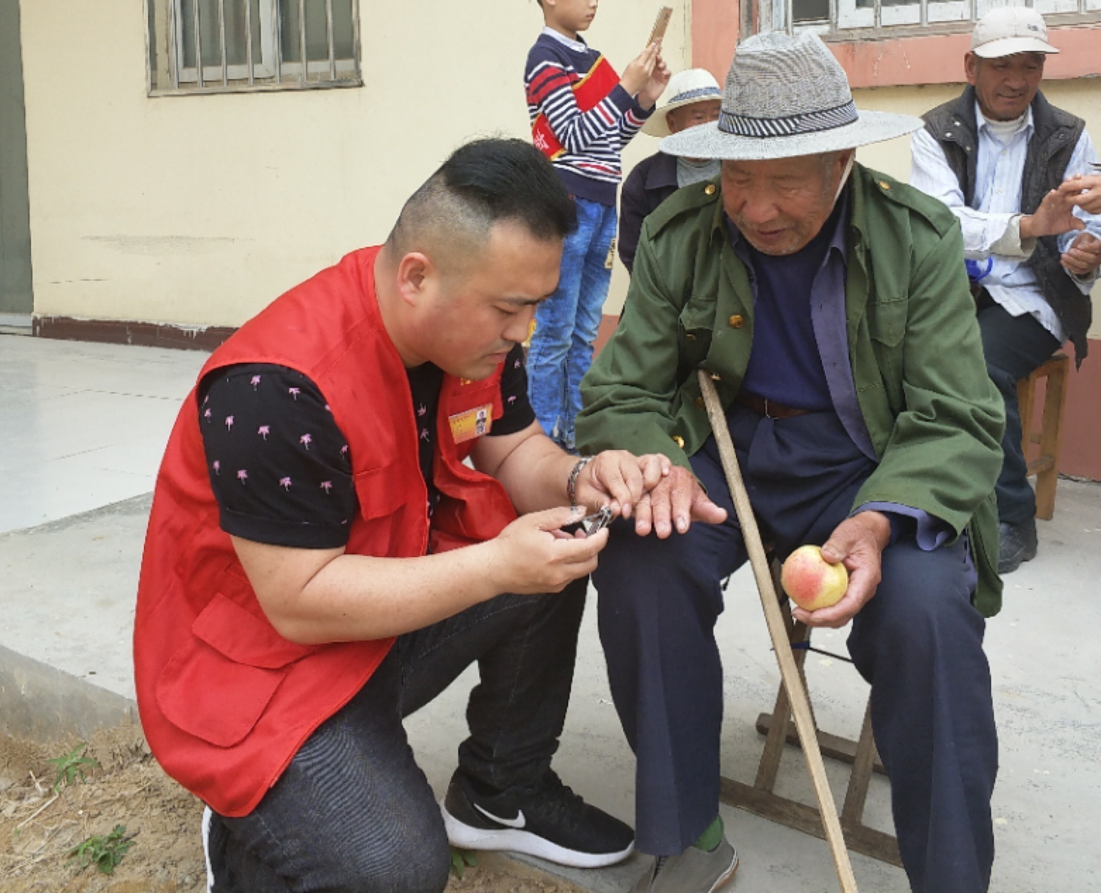 纪磊为老人剪指甲