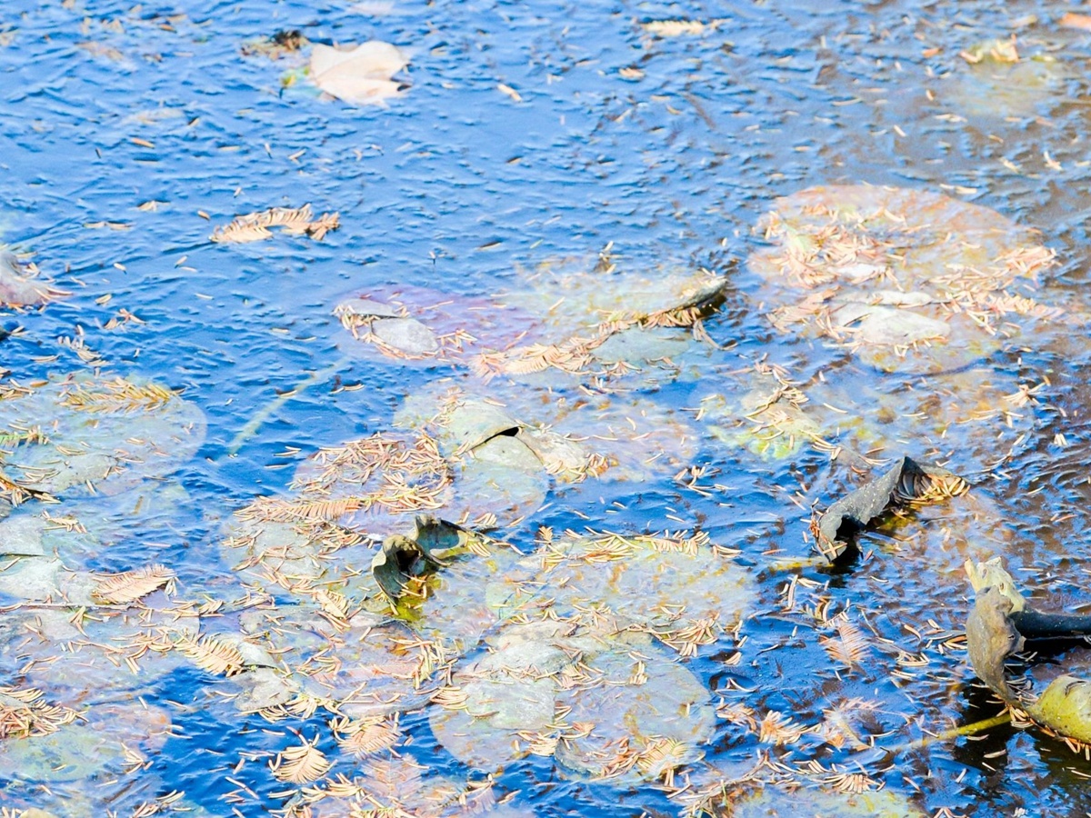 连日降温,青岛气温跌入冰点以下。太平山中央公园、浮山森林公园等地的水面开始结冰。水下的莲叶和水面上的落叶都被冰封起来,形成冬日里的一幅幅美景。