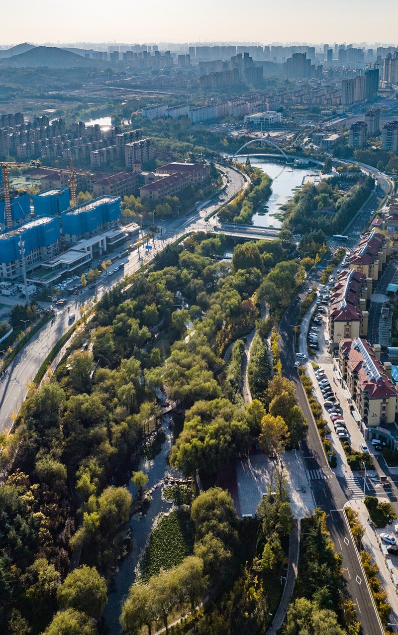 经过多年治理的李村河如同一条碧带绕城而来