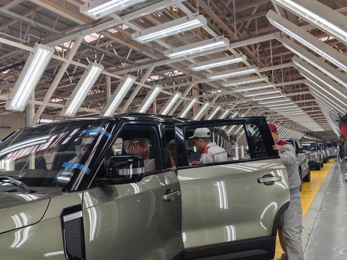 在北京汽车制造厂的生产线上,可以看到即将交付的极石01越野车。这款车是洛轲智能、魏桥创业集团及北京汽车制造共同打造的智能化新能源汽车品牌。极石汽车以其独特的背景和卓越的技术实力,迅速受到市场的青睐。这是一款“为户外而生”的智能豪华SUV,车身已经小部分应用了魏桥的轻量化新材料。陆付军还非常自豪地介绍起“国宝品牌”212越野,这是一款曾经为国人熟知的老牌越野车,2024年6月,搭载众多魏桥铝合金零部件的新款212越野将重装发布。