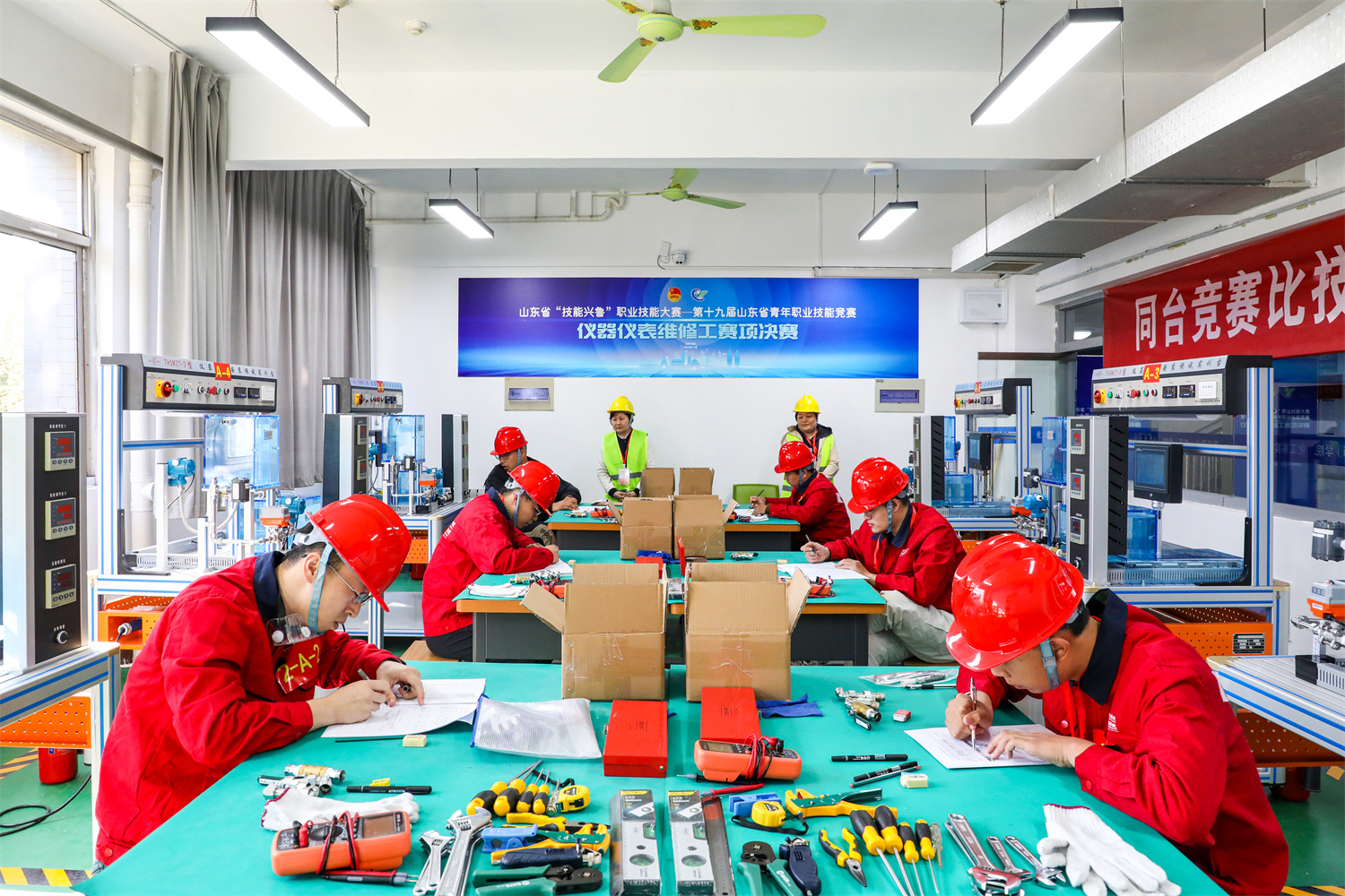 二是实施以赛促学。学院打造“做、学、教、赛”四位一体的育训模式,将大赛作为高素质技术技能人才成长的优质“练兵场”、选拔优秀产业教授的“比武台”。今年陆续承办了山东省“技能兴鲁”职业技能大赛、枣庄市“鲁班传人”职业技能大赛等,持续为深化强工兴产,实施工业倍增提供有力的技能人才支撑。