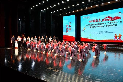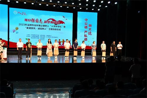 8月9日下午,以“笃行强国志·筑梦新征程”为主题的2023年淄博市全环境立德树人“入学升学礼”暨“美德家风·诚信树人”工程启动仪式在桓台县新时代文明实践中心大剧院举行。