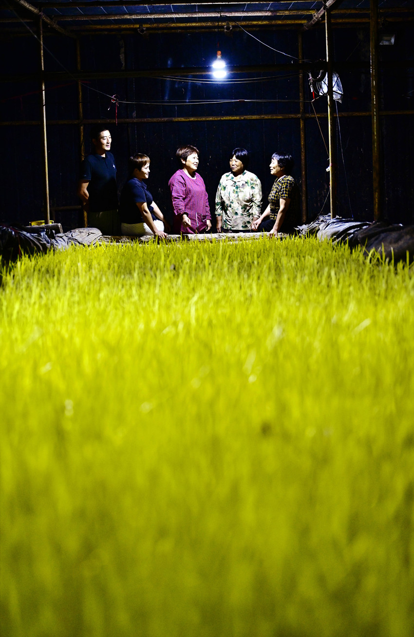 宋志玲在大棚里观察蒜黄的生长情况