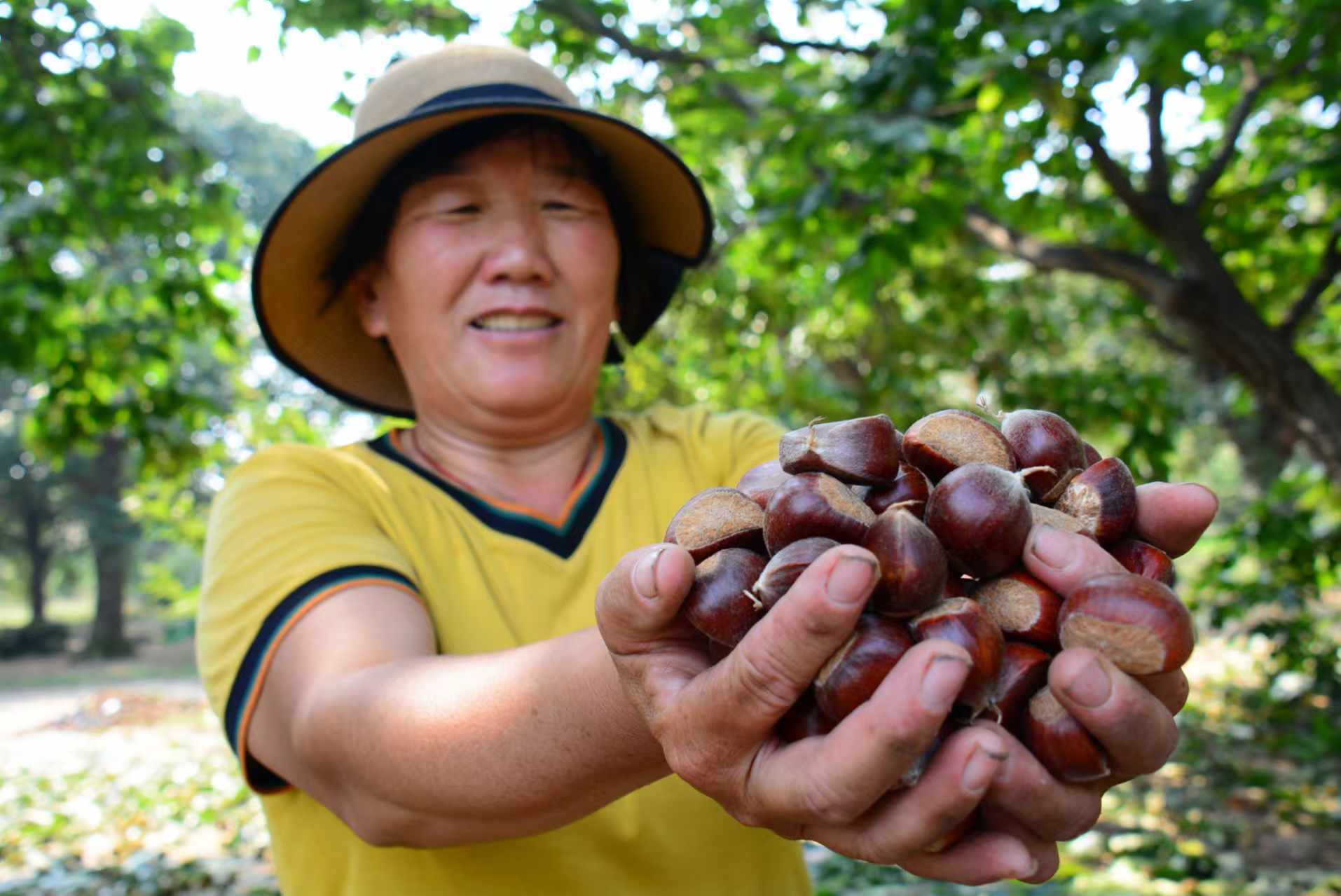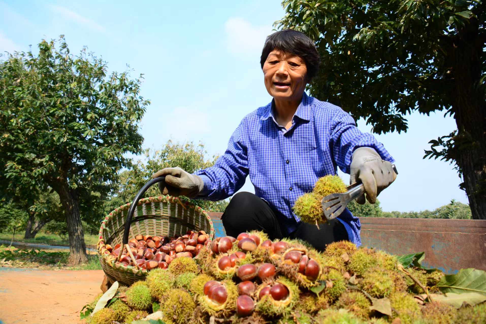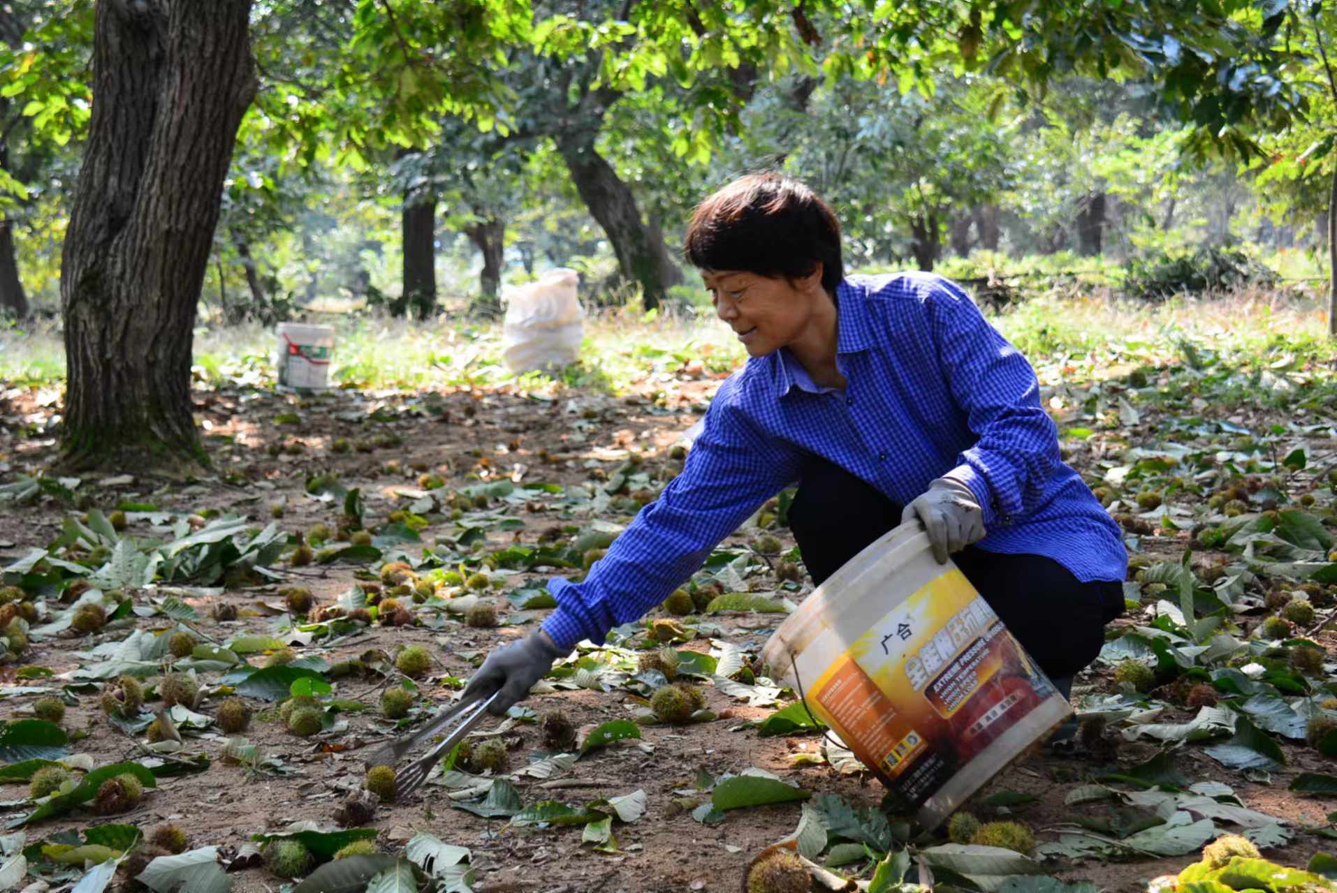 金秋时节,板栗飘香。临沂市郯城县郯城街道万亩板栗园进入收获季,板栗“笑开口”,农户喜丰收。近年来,郯城街道对一些品种老化,挂果少的树木,进行了品种改良,“换头”嫁接,板栗树重新又焕发了生机,沉甸甸的板栗挂满枝头。栗农们手持长竿和竹篮,穿梭在林间,敲打着成熟的栗球,或弯腰在树下,仔细捡拾着从枝头落下的板栗,小小板栗成为农民增收致富的“摇钱树”。