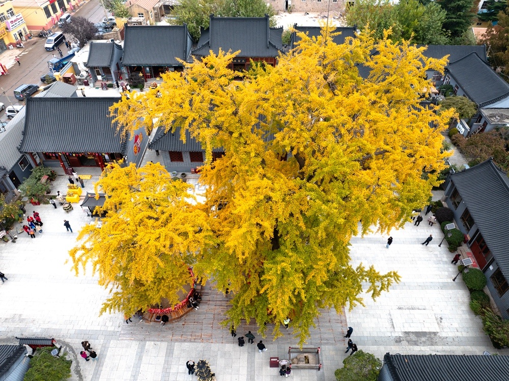 法海寺内的千年银杏迎来了它们每年一度的“高光时刻”(刘栋 摄)